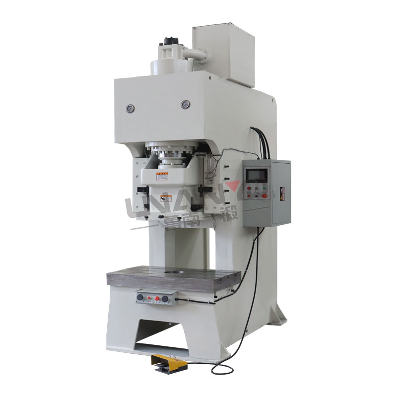 6.整机采用标准冲床的C型结构,通用的锁模柄冲压滑块,标准的工作台。此外,整机还配有双手操作按钮,实现连续、单次和寸动操作规范。